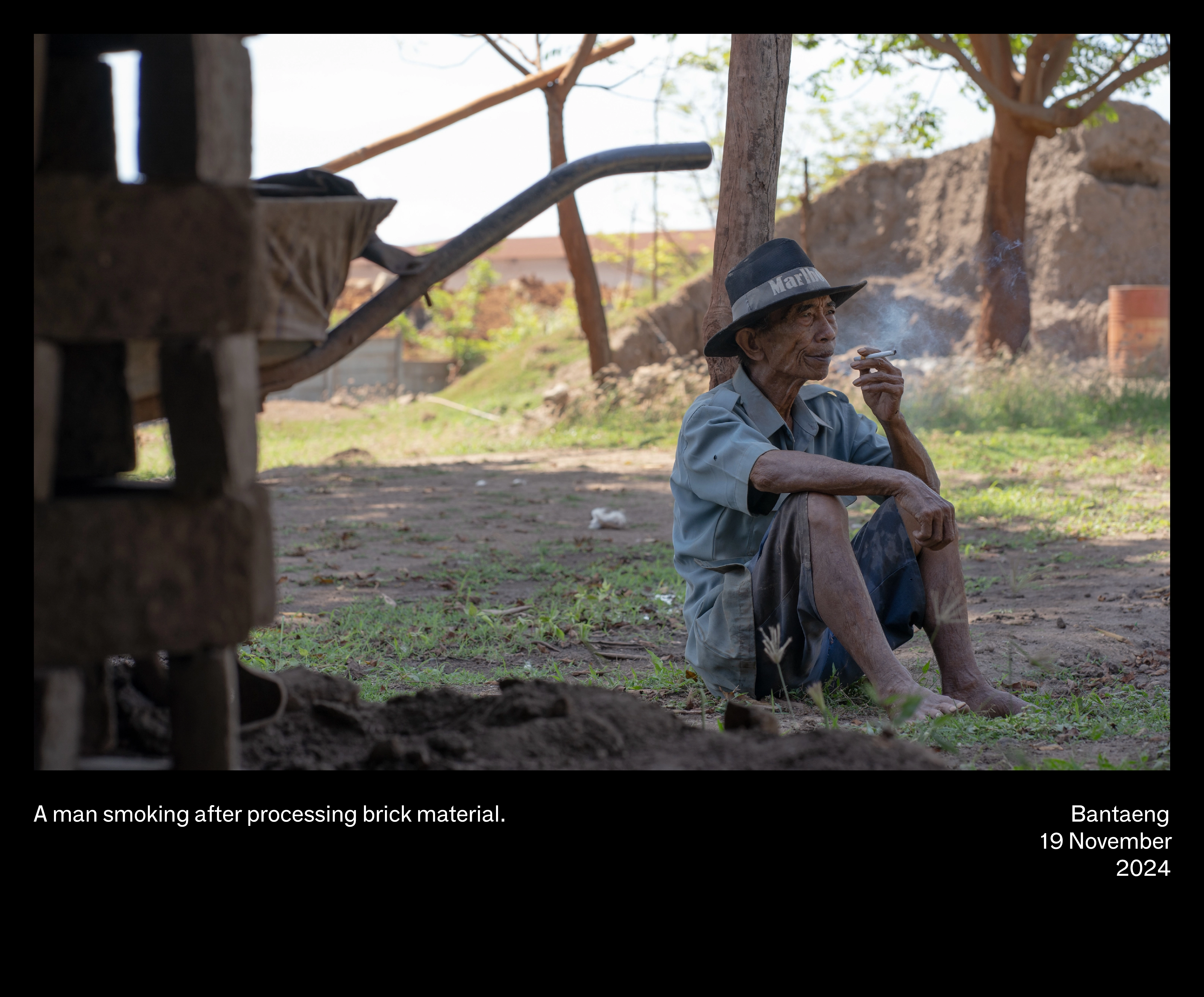 In 2023, Sana’s husband began working as an excavator driver at the factory, earning around 5 million rupiah a month. But with children, grandchildren, and her mother to support, Sana still needs to earn extra income. She continues making bricks at Rp100 each, producing about 5,000 a month for Rp500,000. Each day, Sana and Yeni work from 8 to 10 a.m., break for lunch, then resume from 2 to 5 p.m. Sumiati, her 16-year-old granddaughter. For years, Sumiati – Yeni’s 16-year-old granddaughter – has helped to mold the bricks.