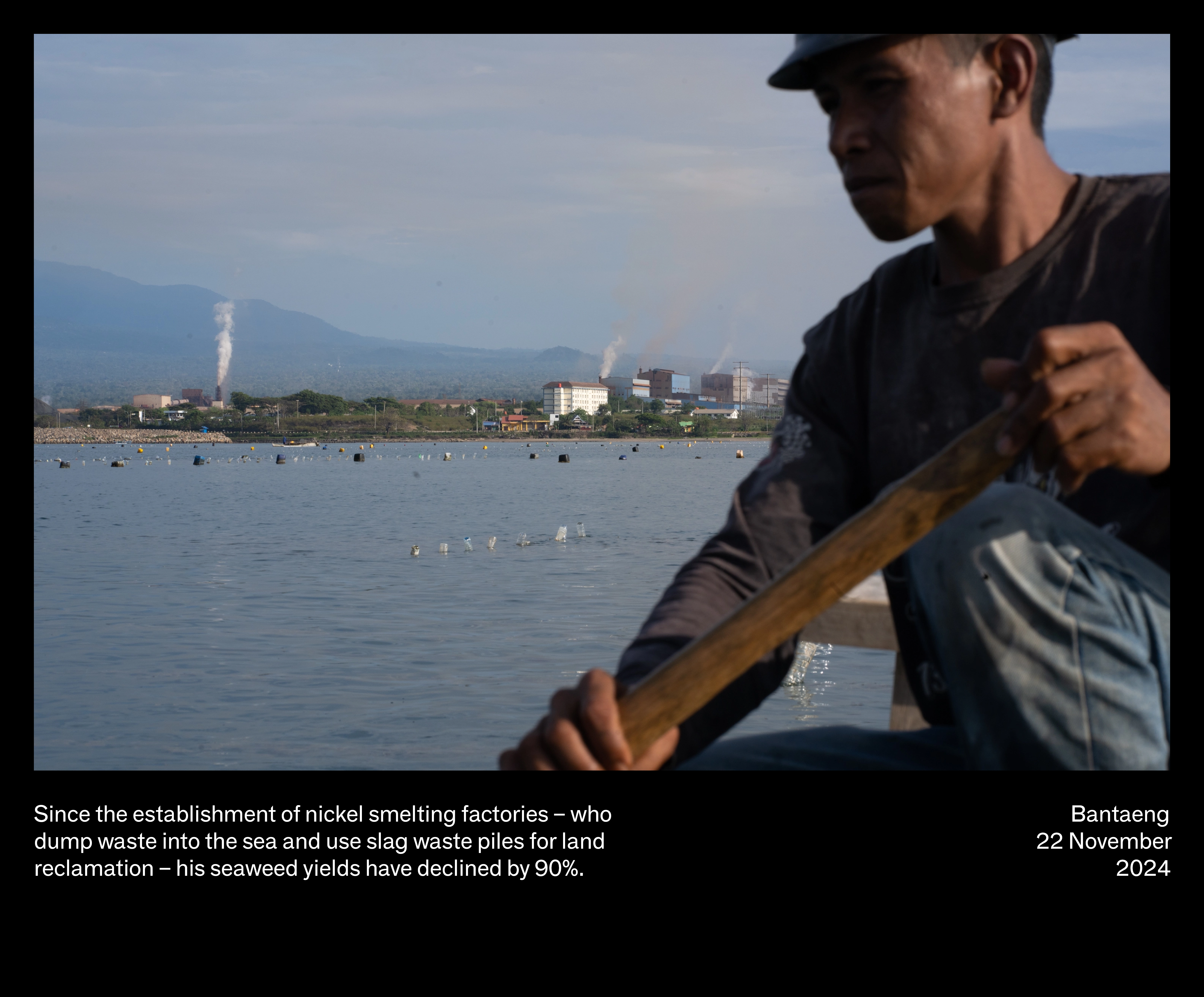 The nickel smelting project in Bantaeng spans 3,252 hectares – 3,151 hectares of land across six villages and 101 hectares of coastal waters slated for reclamation. This coastline in Pa’jukukang was once a thriving seaweed farming area. But now, factory waste and land reclamation have degraded the marine environment, making it difficult for seaweed to grow.