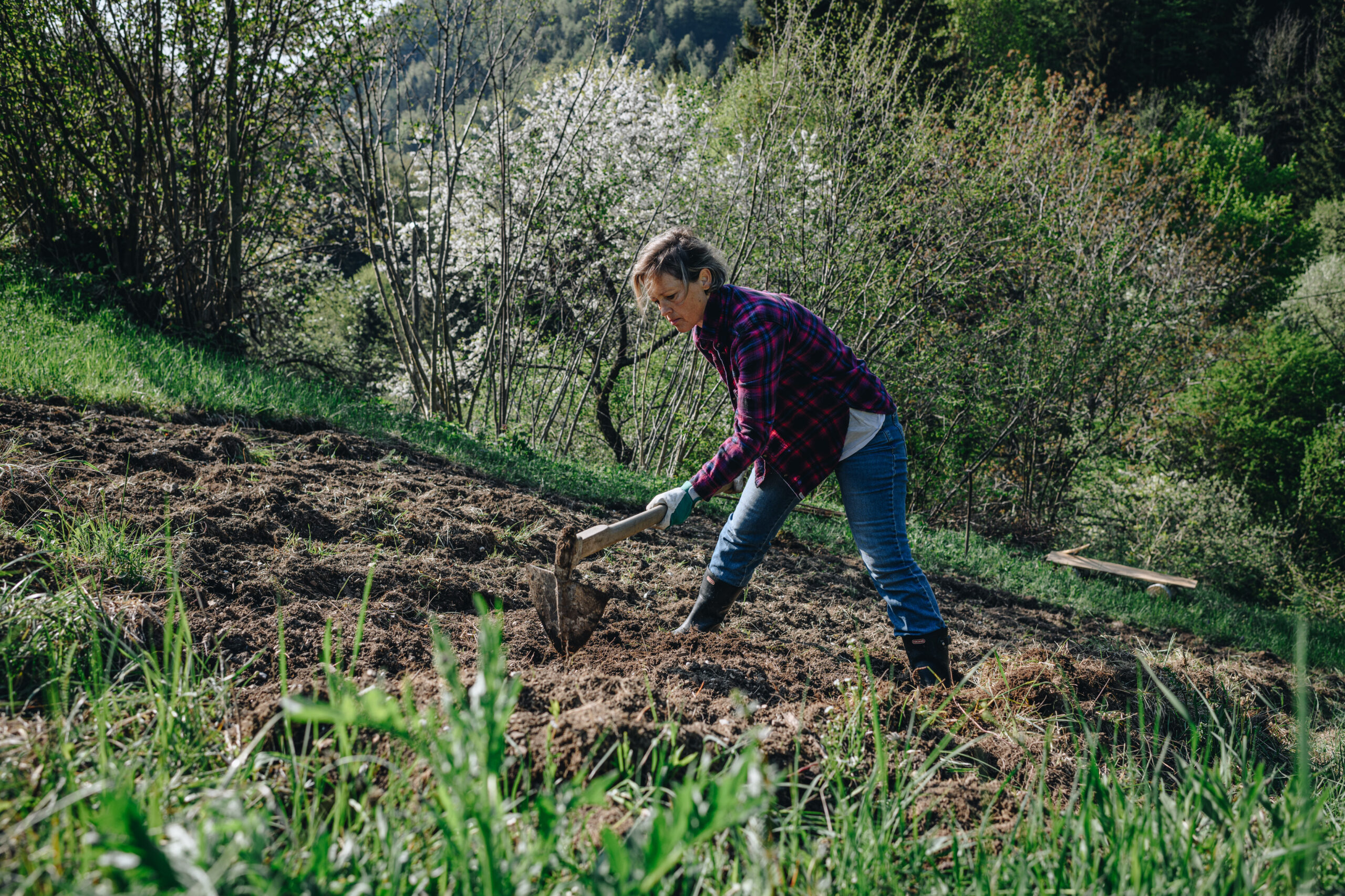 I grew up in an industrial town near the farm, where we measured progress by the amount of coal that was dug up every year. At the same time, I spent many days on this same farm where we are now living. My grandparents were small farmers who got this land from their parents after they got married and managed to farm four hectares in a way that nine people were able to eat and go to school. They managed this with two cows and two pigs and most of the land dedicated to growing everything from oats and potatoes to vegetables and fruits. Still my grandfather had to take a job in a local leather factory to make ends meet, and my grandmother was selling milk products here and there and writing reports for a meteorological station in Ljubljana.