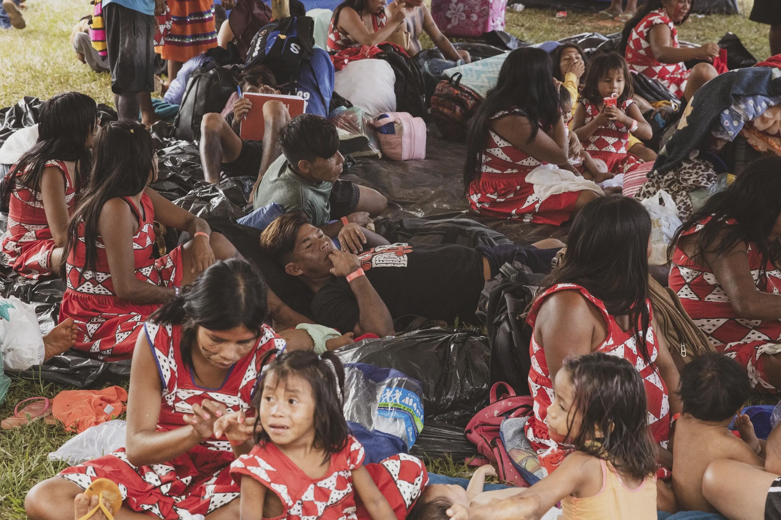 The babies, toddlers, children and youth at Camp bring a renewed sense of possibility. For many of them, it’s their first time at Camp, the first time feeling like they are less alone, like they are a part of a mass that resists in the face of destruction. In the homes where they come from, many of the youth have local language preservation initiatives, bioeconomy processes that recover native seeds and traditional ingredients, and are even leading lawsuits against multinational corporations for issues like river pollution and the impacts of infrastructure mega projects on the forest. Many of the youth pair this work with positions such as forest monitors or firefighters. They have created brigades that track invaders of their lands and stop the wildfires that spread out of control. Those lands where they have recognition and control, have reached deforestation rates tenfold lower than government reserves or territories that are unrecognised.
