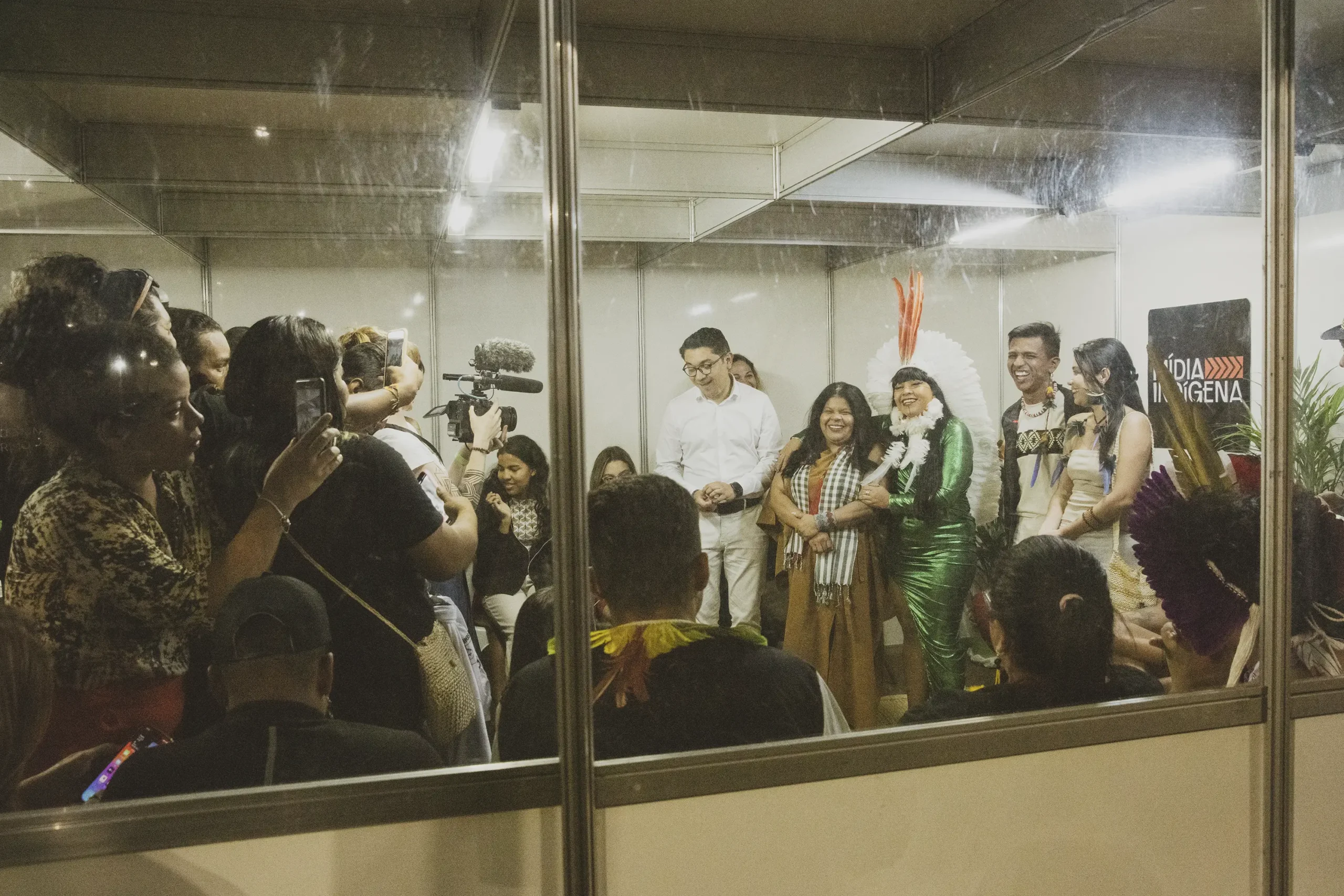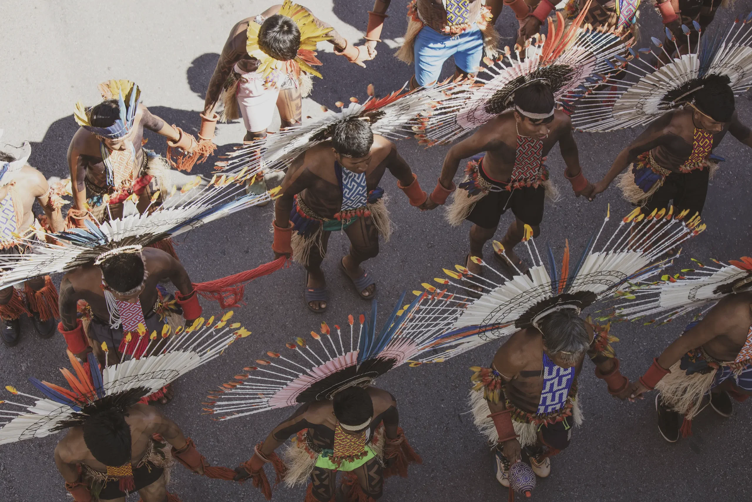 We bore witness to the makeshift plenaries formed in every corner of Camp, consolidating messages that were then carried through the capital in the form of actions like the massive ‘cobra of time’ that marched up to the Presidential Palace, or the projections that turned the blank Senate and Congress into a rainbow of feathers, faces and messages declaring “Our time frame is ancestral, we have always been here”. These messages reverberated beyond the bounds of the city thanks to the work of hundreds of communicators, including the first legally formed Indigenous communicators association in the country, Mídia Indígena. All bringing their cameras, drones, microphones and cellphones to tell the story of Camp to those back home who need the inspiration to keep going.