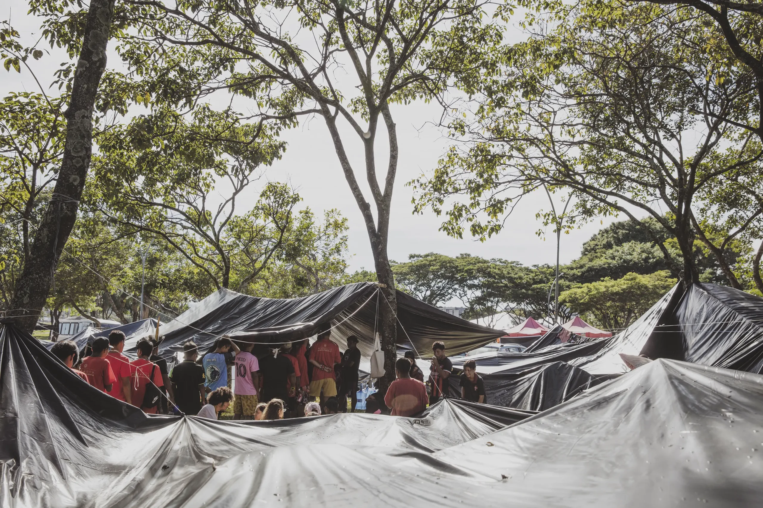 Once in Brasilia, all the delegations set up camps that allowed them to keep dry in the rain that took over the city for the first two days. They dug furnaces to keep fires burning and prepare their food and created artisanal clothes hangers to dry off from the rains. This resistance, in the form of adaptability and creativity on the ground, was not only a central part of the arrival and financing process, but also kept a dialogue with communicational, campaigning and even health aspects of the Free Land Camp.