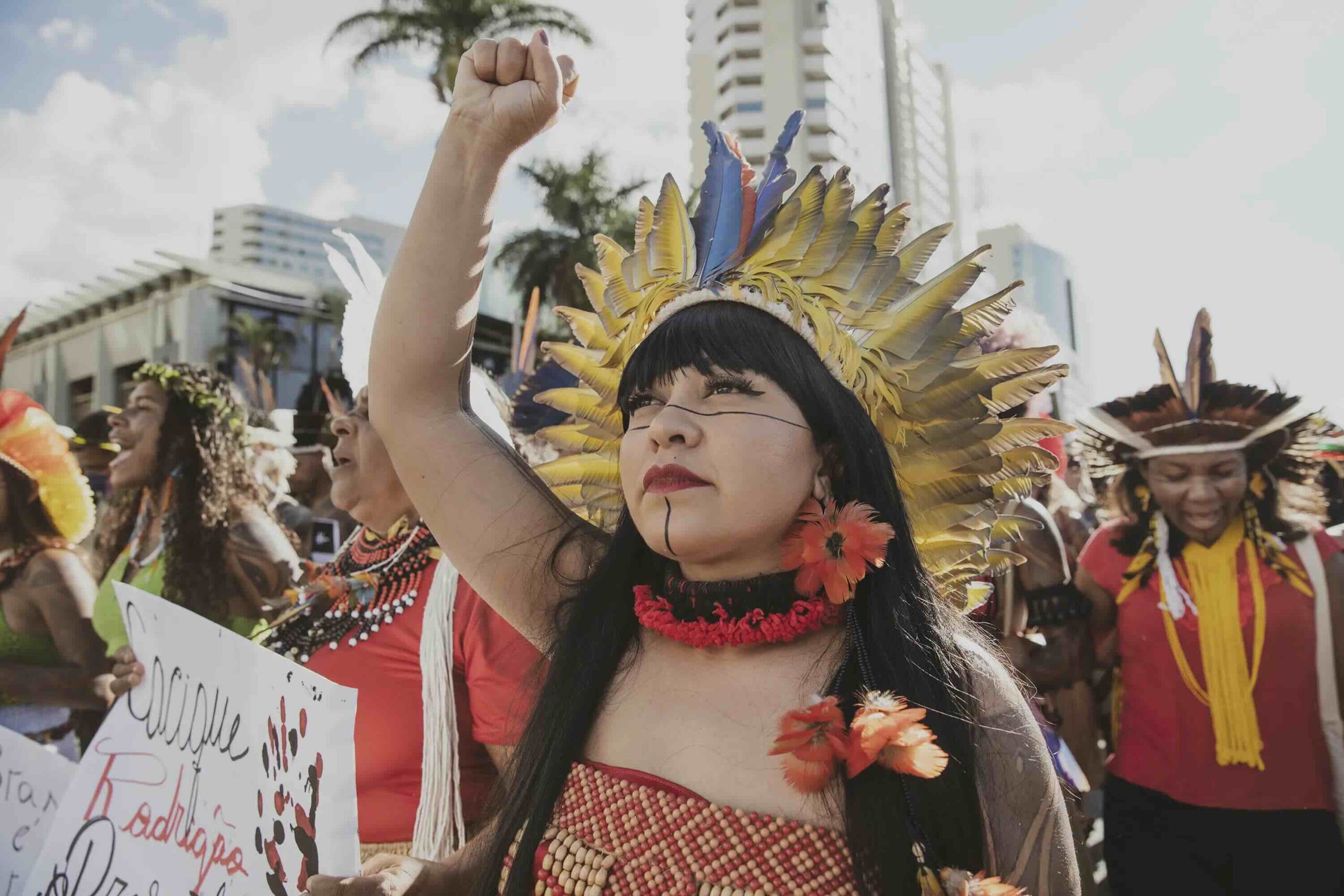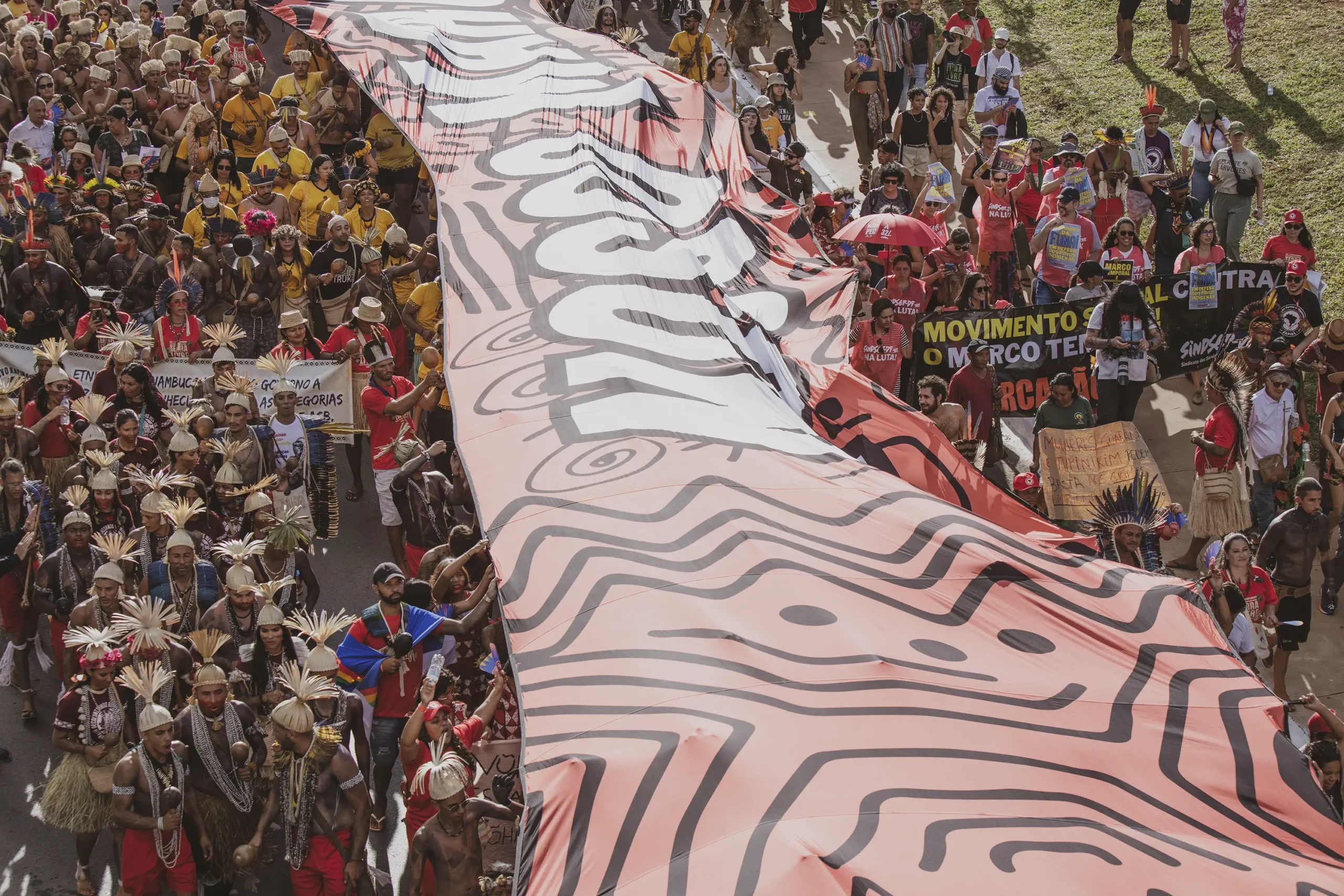 Now, after 20 years of resistance inside and outside the Camp, the demands of the indigenous movement in the country are, sadly, in many ways the same as they were then. For the past few years, APIB and its grassroots organisations have been fighting Marco Temporal, also known as the “Time limit trick”- a series of legal attempts by Congress to stop the land demarcations that are mandated by the Constitution. This theory argues that communities who weren’t on their land at the time the Constitution was signed in 1988, should not have their territory demarcated. Of course, at that moment, hundreds of communities had been forced out of their lands by extractive industries, land grabbing, extensive farming and the military dictatorship that had ruled the country between 1964 and 1985.